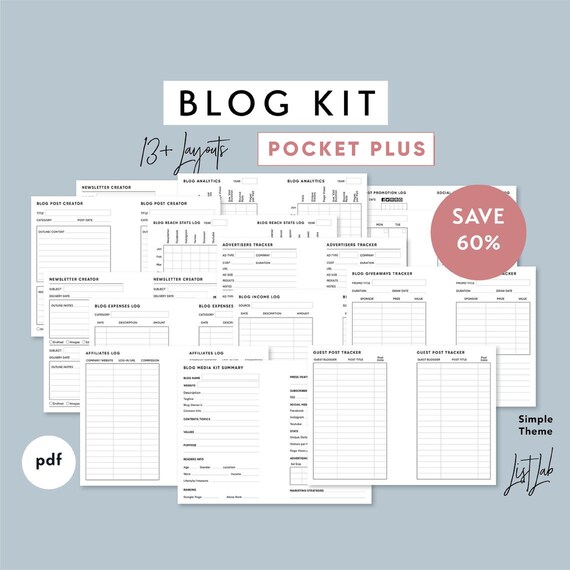 Pocket Plus Blog Kit For Ring Planner Printable Insert Etsy